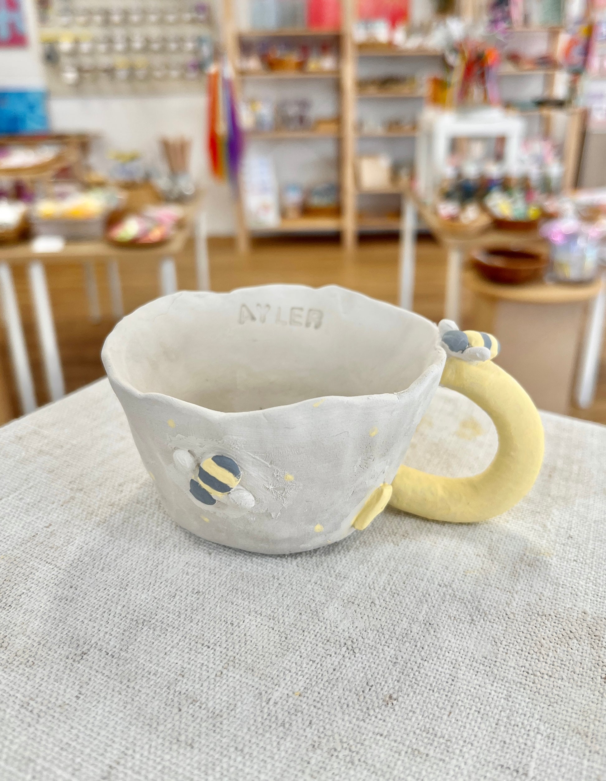 All materials will be provided (clay, tools, apron, glazes). Price includes firing for 1 piece. Any additional pieces will be $15 a piece. Pieces will be ready for collection within 2-3 weeks.