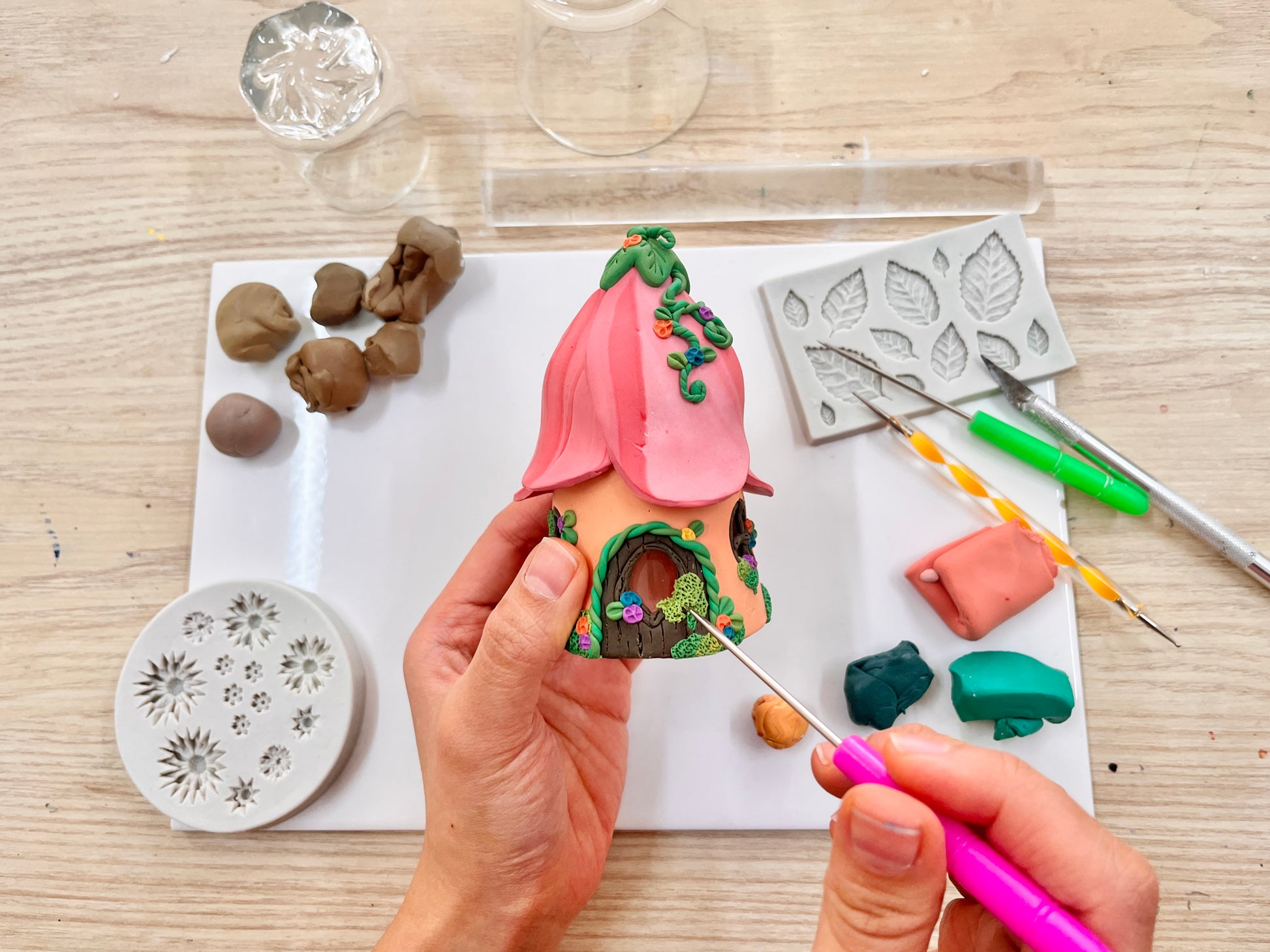 In this enchanting hand building workshop, you will learn the art of creating whimsical homes out of polymer clay. Step into a world of imagination as you discover how to construct your very own house using a jar and polymer clay.