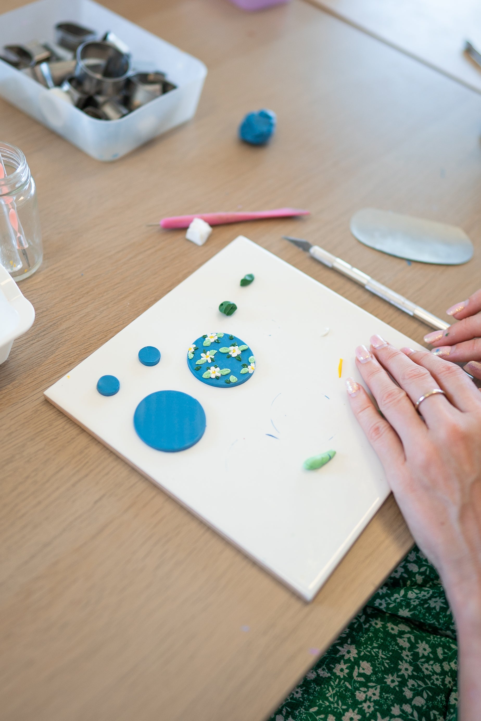 In this workshop, we will be working on a slab of polymer clay and learning basic techniques to add designs onto the slab and create your own earrings!